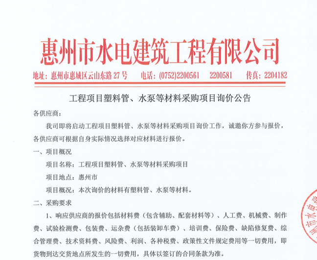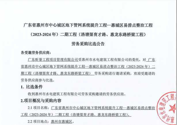 惠州市水電建筑工程有限公司勞務(wù)供應(yīng)商庫擴(kuò)庫評審結(jié)果公示……